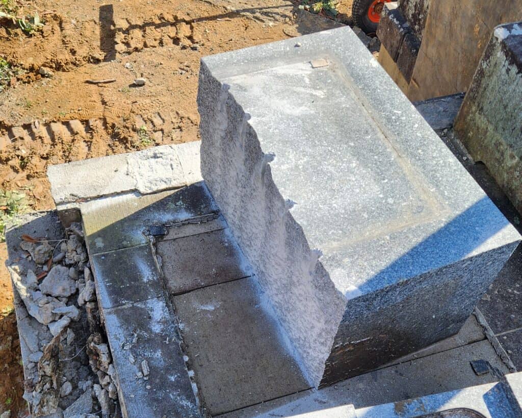 備考:石量多い、機械の隣接が困難、隣の墓石と密着、手作業による粉砕が必要