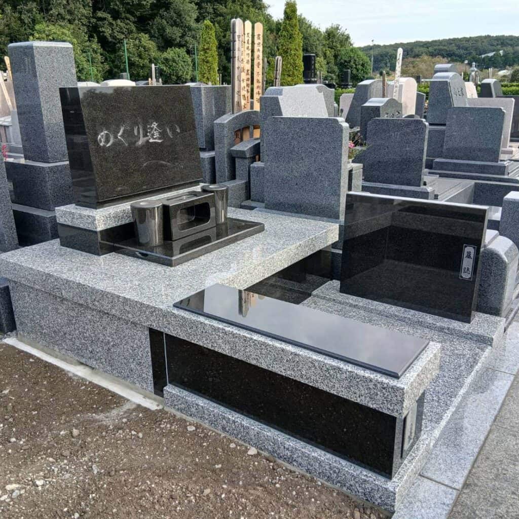 やや目の粗い白系の石とインド産黒みかげ石の組み合わせです。モダンでシックな雰囲気に仕上がりました。2色のコントラストがとても印象的です。