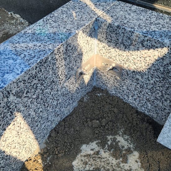 石塔にはステンレスの耐震棒を入れ、腰石の四隅はしっかり金具で固定しております。